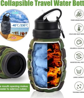 Collapsible Travel Water Bottle18oz, Reuseable Silicone Foldable Water Bottles for Gym Camping Hiking, Portable Leak Proof Sports Water Bottle with rugby Carabiner (Green)