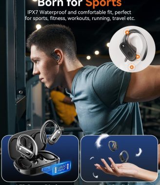 Wireless Earbuds, Sports Bluetooth 5.4 Headphones, Ear Buds with ENC Noise Canceling Mic, 80Hr Playtime Earphones, Palm-Sized, LED Power Display, IPX7 Waterproof Headset for Workout Running, Black